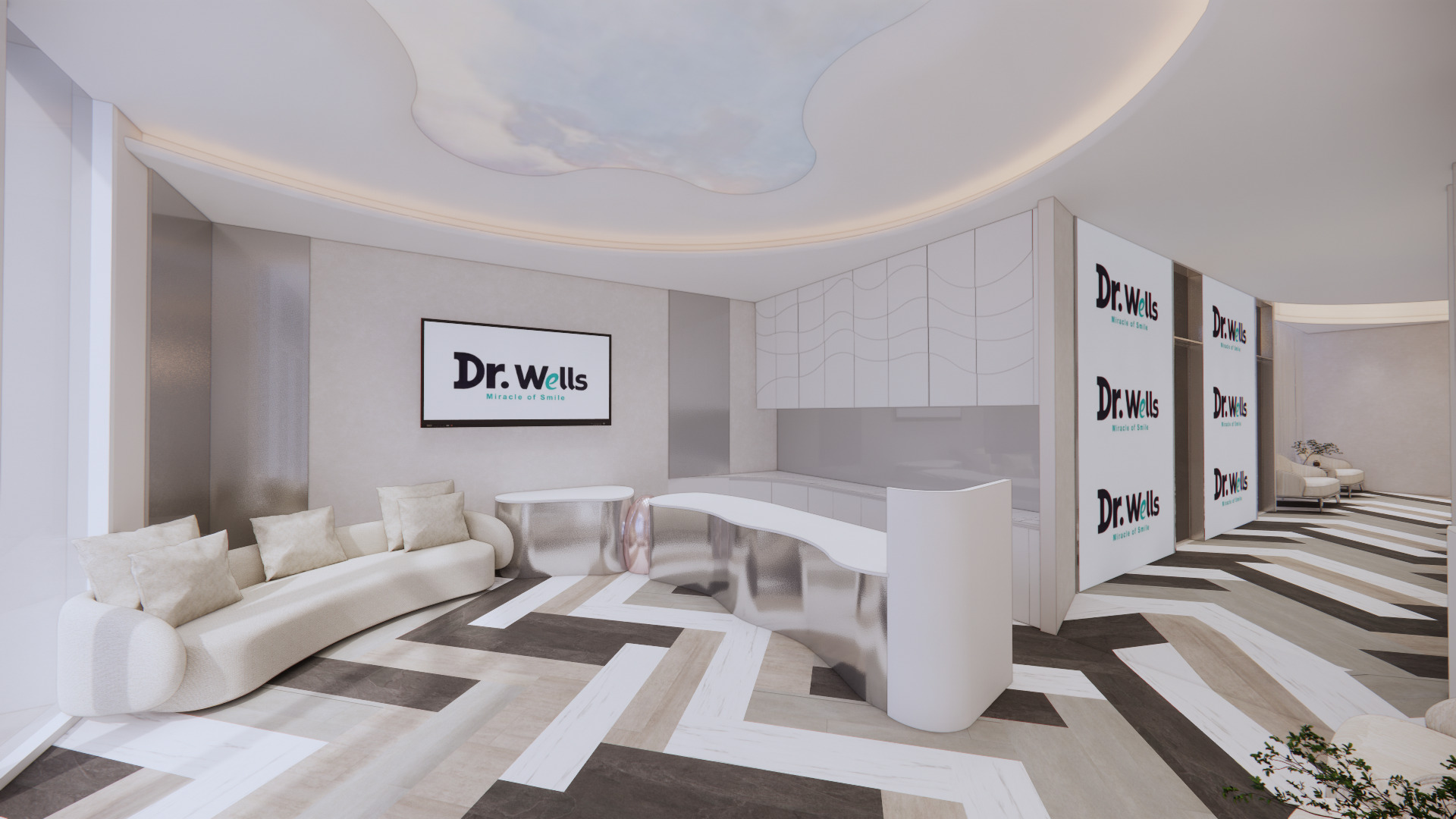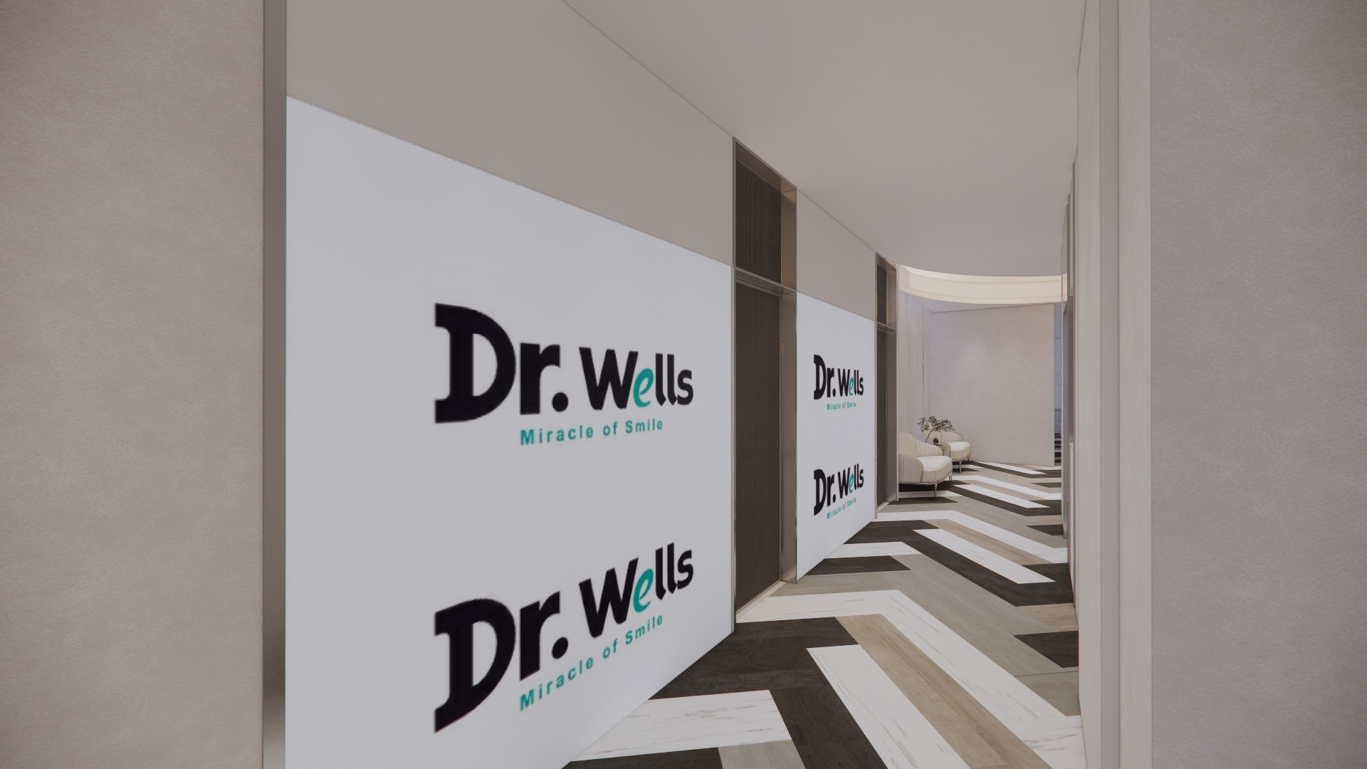 採用 簡約大器的白色與金屬質感,搭配「Dr. Wells」品牌識別,突顯專業、現代與高端感。