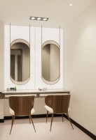 診所不只是醫療服務的場域,更是推廣美學與自信的生活空間。透過展示牆上的產品與藝術設計,將美延伸到日常,讓顧客帶著自信與優雅走出診所。