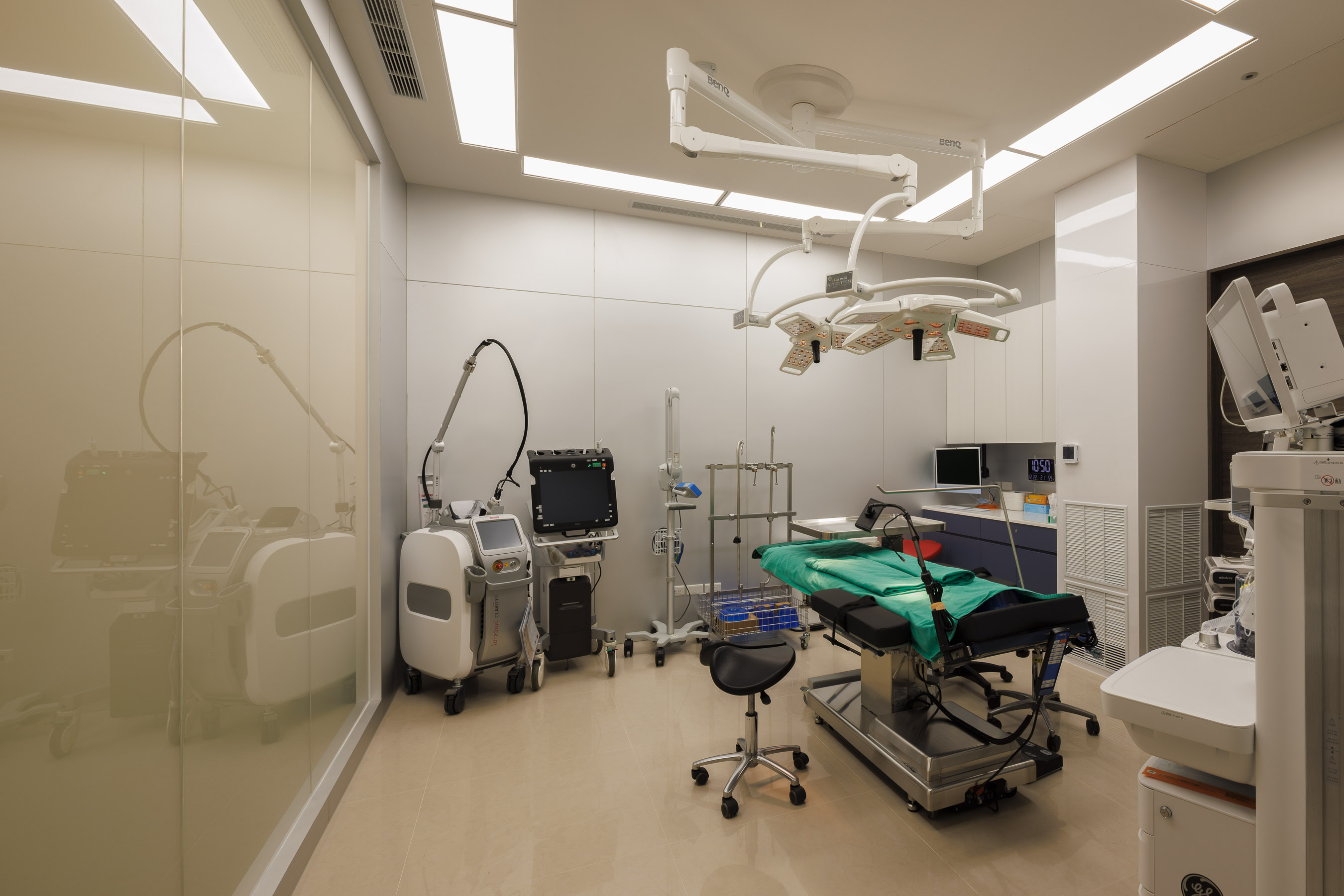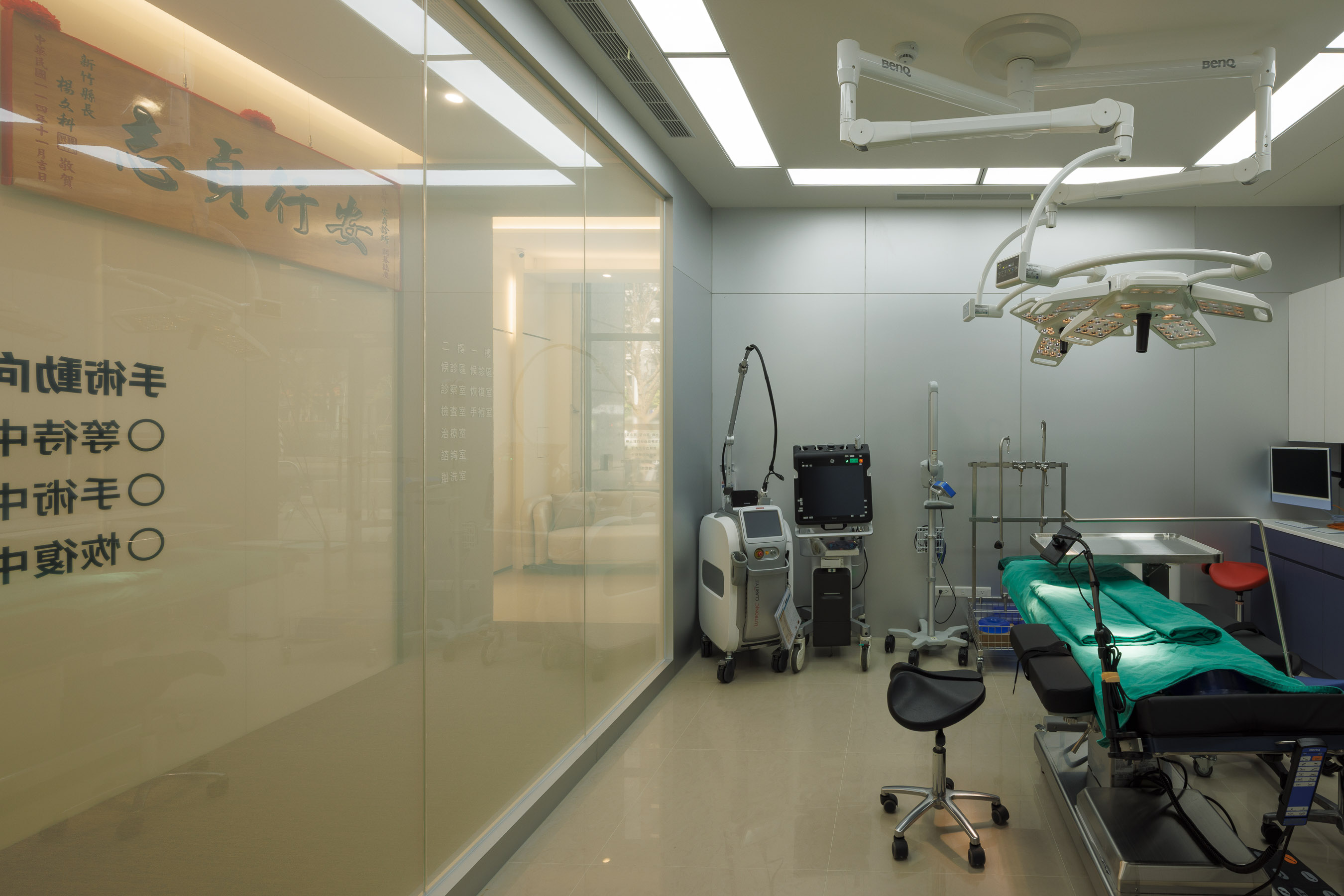 醫療設計的最高境界,是在專業機能中注入安定人心的力量。在安貞診所的手術空間中,我們採用符合國際醫療標準的牆面材質與無縫設計,確保絕對的潔淨度。視覺上,我們選用沉穩的高級灰與純淨白,營造出冷靜、專注的氛圍。透過精密計算的光學照明規劃,消弭陰影死角,不僅支援醫師的精準醫療,更讓患者在入診時,能從井然有序的場域中獲得全然的信任與安心。
